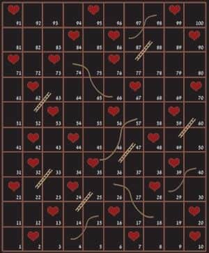 משחק סולמות ולבבות מבוסס על משחק הילדים המוכר והפופולארי סולמות ונחשים.
