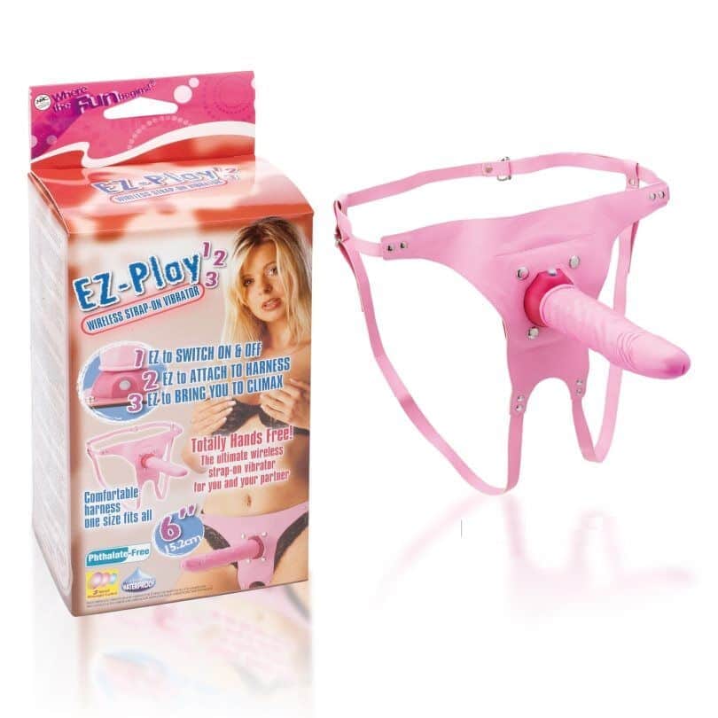 בסטרפ און ביצת רטט חזקה אשר מגרה את איבר המין